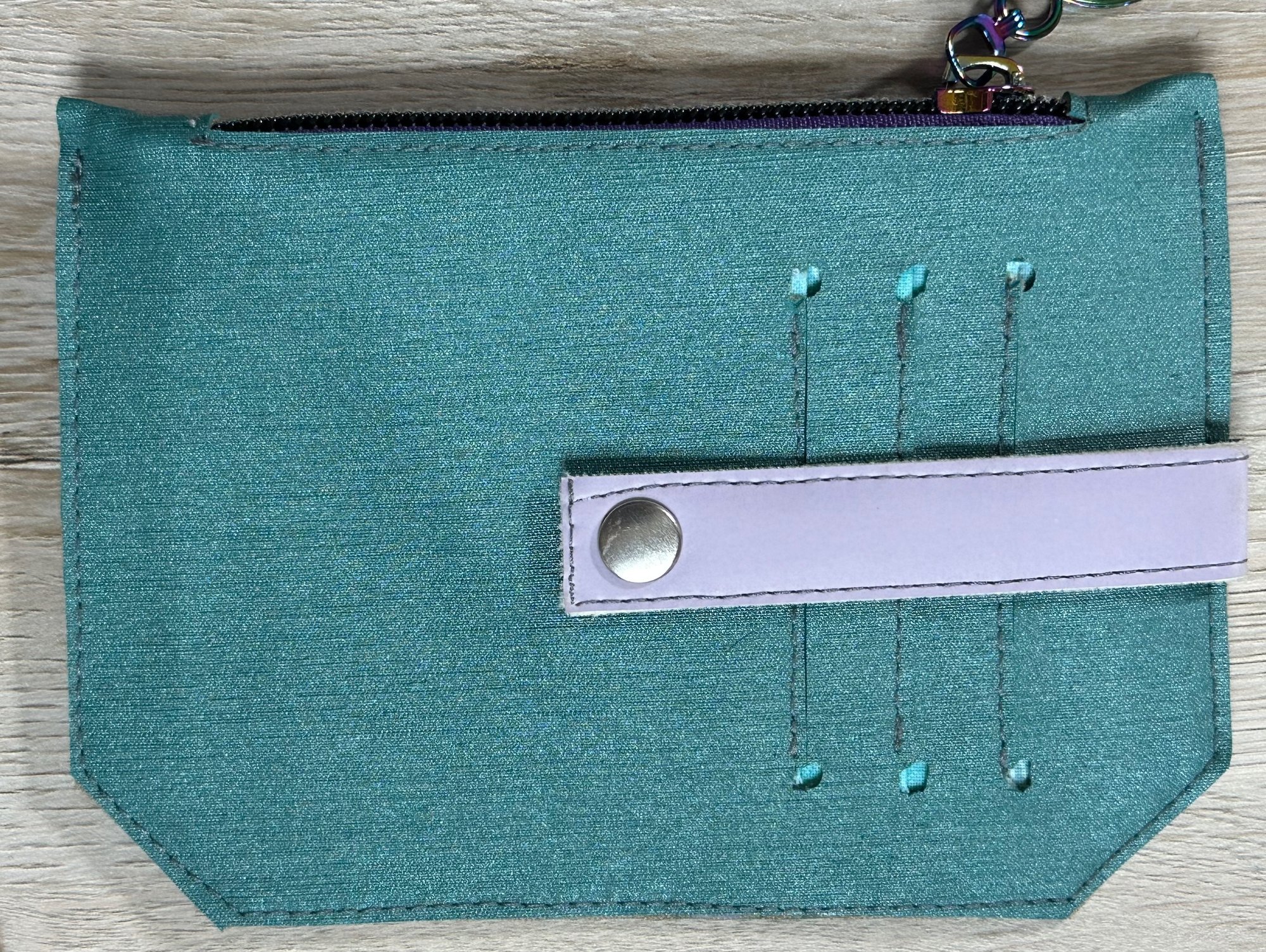 How cute is this change purse. Features three card slots on the exterior with a flap to secure your cards. A Zippered pocket for change or folded dollar bills. Measurements are 5.5 inches wide by 4 inches tall.